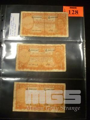 3 X COMMONWEALTH OF AUSTRALIA 10 SHILLING NOTES, COOMBS/WATTS, A 56 PREFIX