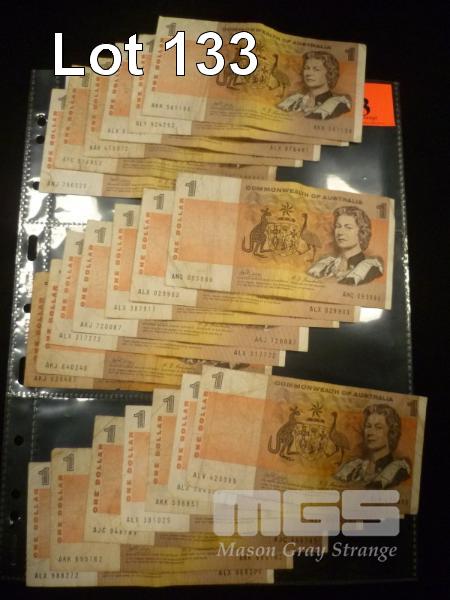 19 X COMMONWEALTH OF AUSTRALIA 1 DOLLAR NOTES PHILLIPS/RANDELL, A PREFIX