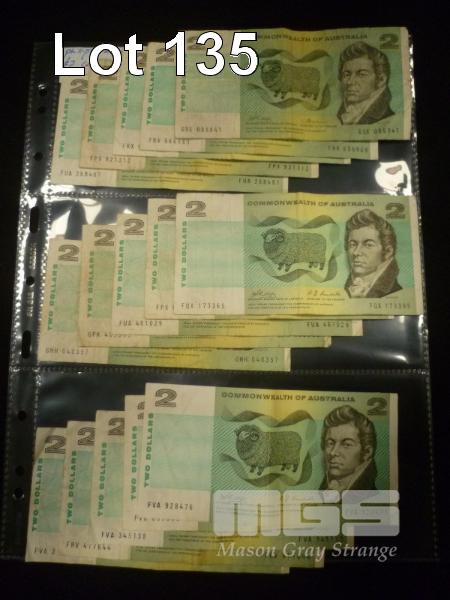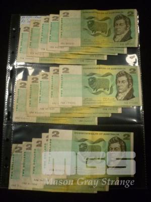 15 X AUSTRALIAN TWO DOLLAR PAPER BANKNOTES, PHILLIPS/RANDALL, F PREFIXES