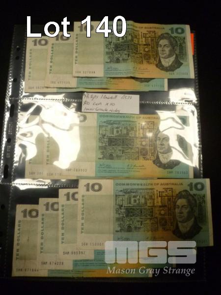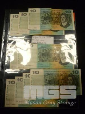 10 X AUSTRALIAN TEN DOLLAR PAPER BANKNOTES, PHILLIPS/RANDALL, S PREFIXES