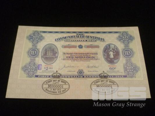 11 MAY 2013 FDC CENTENARY FIRST COMMONWEALTH BANK NOTE