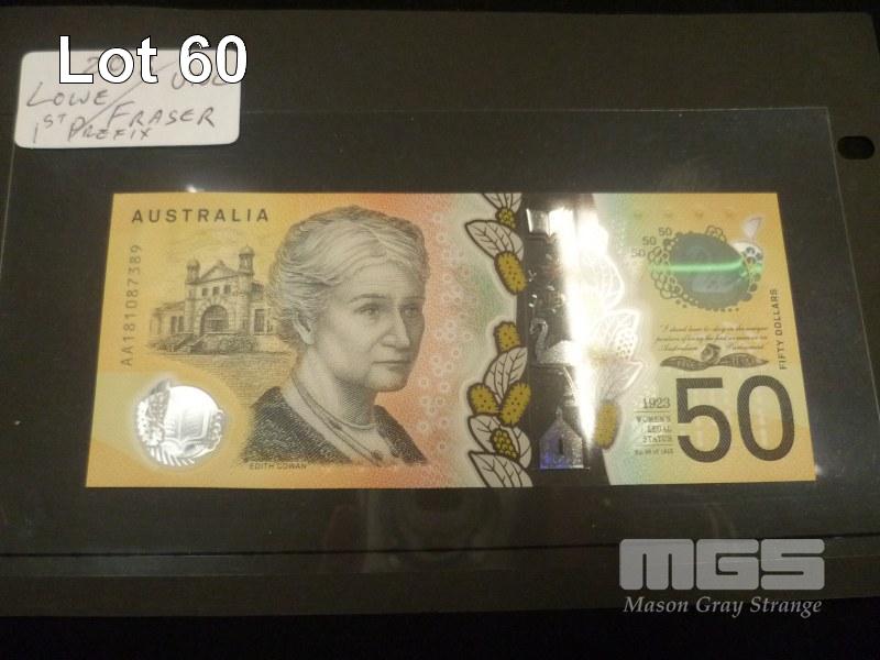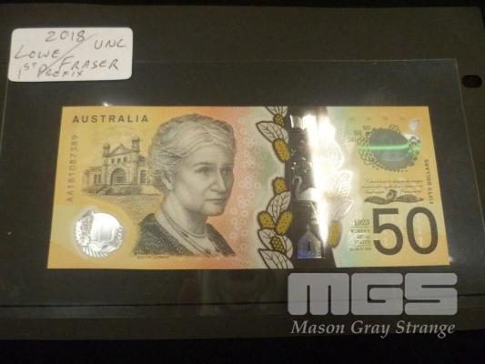 AUSTRALIA, $50 POLYMER BANKNOTE, LOWE/FRASER, AA 181087389, FIRST PREFIX