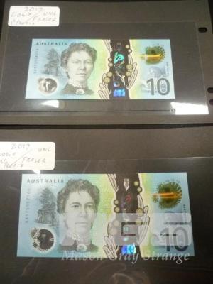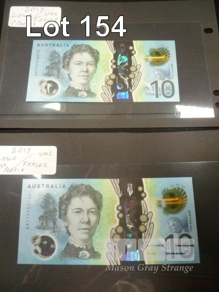 2 X AUSTRALIA, $10 POLYMER BANKNOTES, LOWE/FRASER, AA 175157164, AA175158019, FIRST PREFIX
