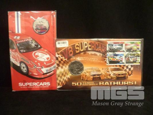 ROYAL AUSTRALIAN MINT COLOURED .50c COIN, 2000 HOLDEN VT COMMODORE & AUSTRALIA POST COMMEMORATIVE .50c COIN, 50 YEAR OF BATHURST RACING