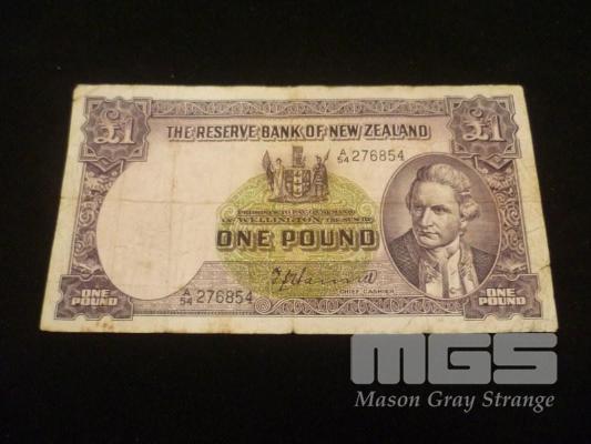 1940 NEW ZEALAND ONE POUND BANK NOTE, TP HANNA