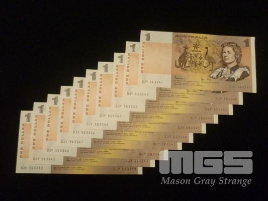 10 X CONSECUTIVE, AUSTRALIA, $1 PAPER BANKNOTES, JOHNSTON/STONE, DJY563341-350
