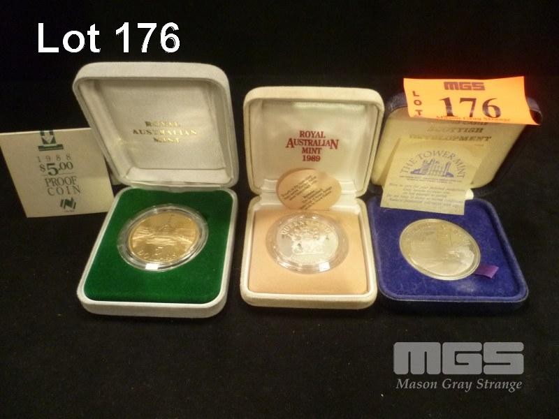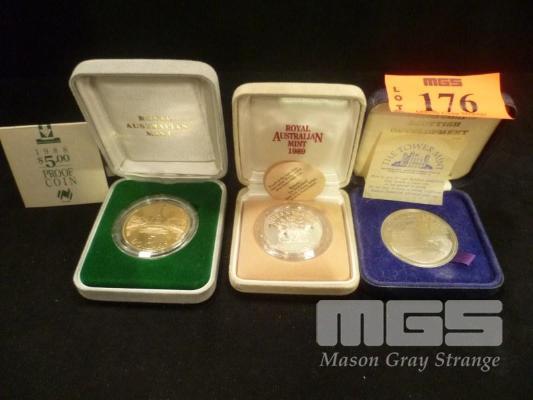 3 X COMMEMORATIVE COINS 1988 PARLIAMENT HOUSE, 1989 QLD 10 DOLLAR COIN & THE TOWER MINT MEDALLION