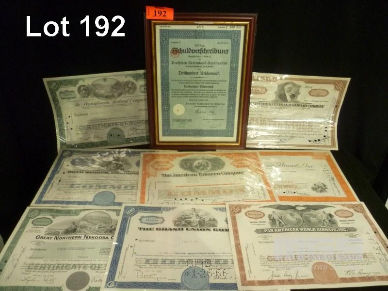 COLLECTION VINTAGE SHARE CERTIFICATES, INC; PAN AMERICA WORLD AIRWAYS, THE GRAND UNION COMPANY, BOND STORES INCORPORATED, THE PENNSYLVANIA RAILROAD COMPANY, THE NEW YORK CENTRAL RAILROAD COMPANY, AMERICAN BRANDS INC, THE AMERICAN TOBACCO COMPANY, SCHULDVERFCHREIBUNG