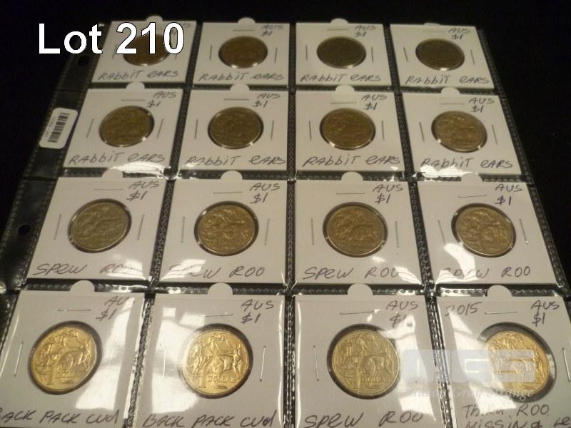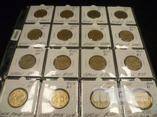 16 X AUSTRALIA, $1 ERROR COINS, INC; RABBIT EARS, SPEW ROO, BACK PACK CUD, THIRD ROO MISSING LEG