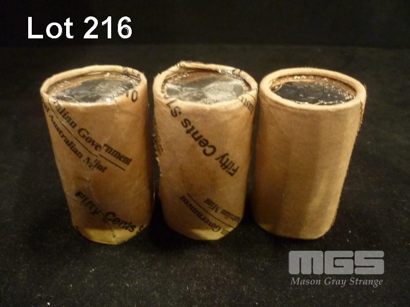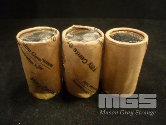 3 X ROYAL AUSTRALIAN MINT, 50c BANK ROLLS, UNC, INC; 2 X 2017, 1 X 2006