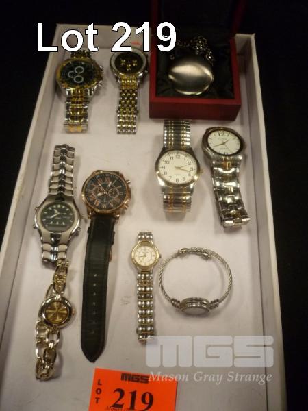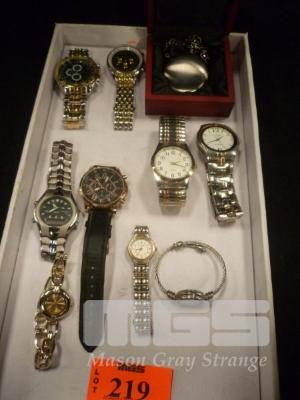 10 x ASSORTED WATCHES INCLUDING POCKET WATCH IN DISPLAY BOX