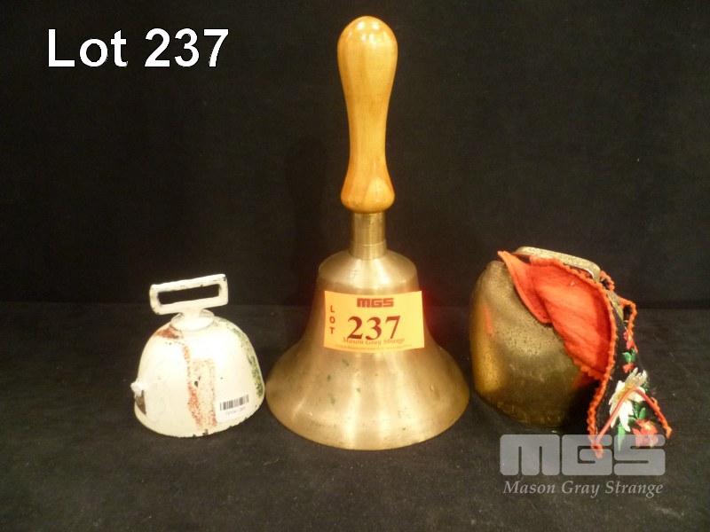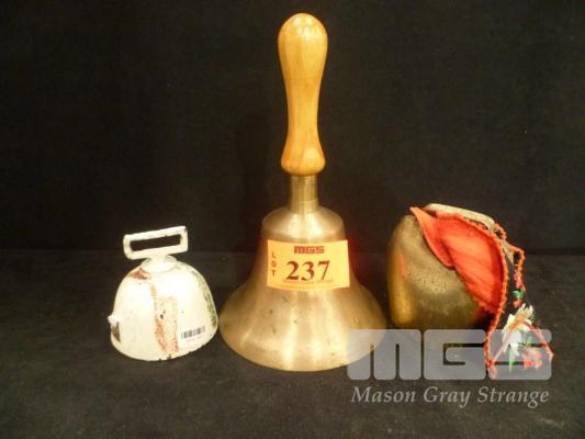 2 x COW BELLS, & SCHOOL BELL, 21cm (T)