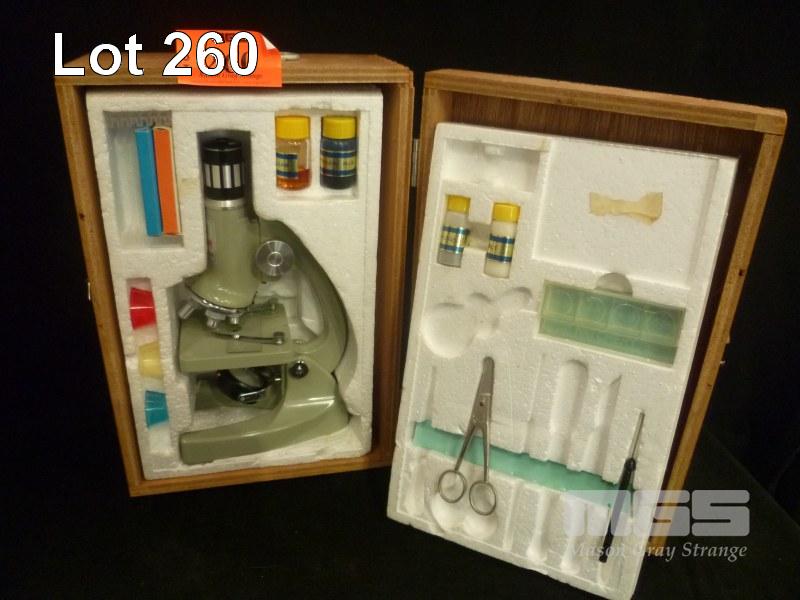 TIMBER BOX MICROSCOPE HOC ZOOM 50x-900x JAPAN, AS NEW CONDITION