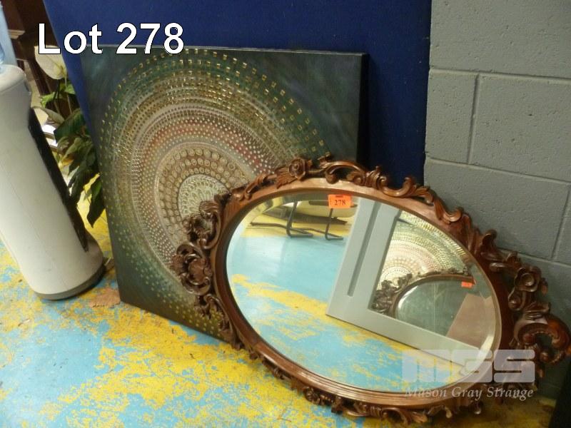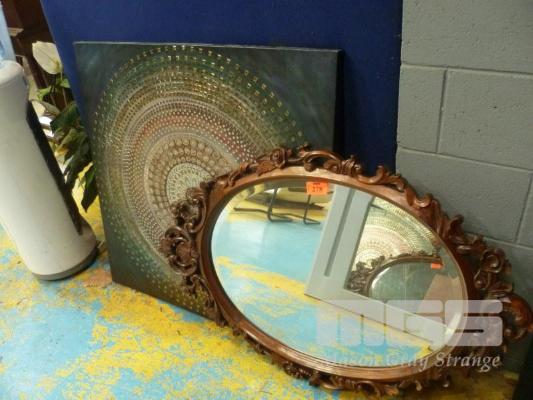 ACRYLIC ON CANVAS WALL ART & ORNATE, TIMBER FRAMED WALL MIRROR