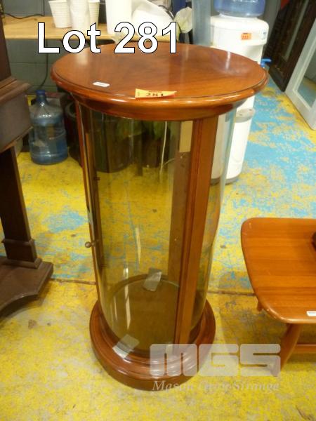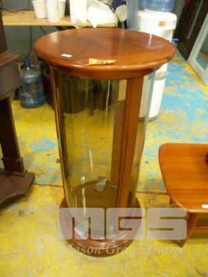 ROUND MAHOGANY DISPLAY CASE, 2 x GLASS SHELVES
