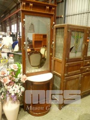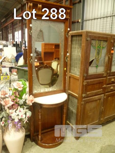VINTAGE HALL STAND, MARBLE TOP, ETCHED MIRROR