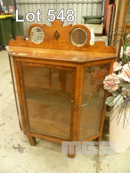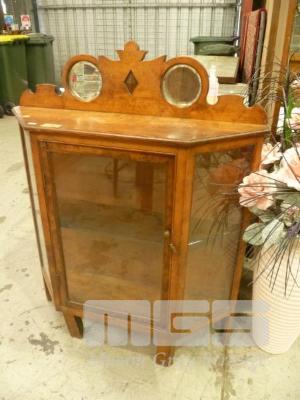 VINTAGE DISPLAY CABINET, CIRCULAR MIRROR INSERTS, SINGLE DOOR