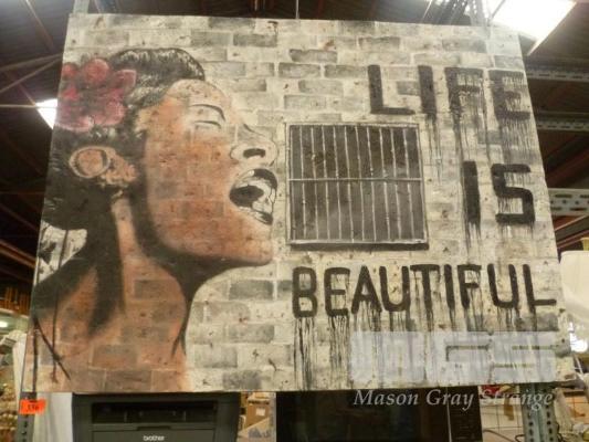 OIL ON STEEL, REPRODUCTION PAINTING, LIFE IS BEAUTIFUL 100 x 130cm