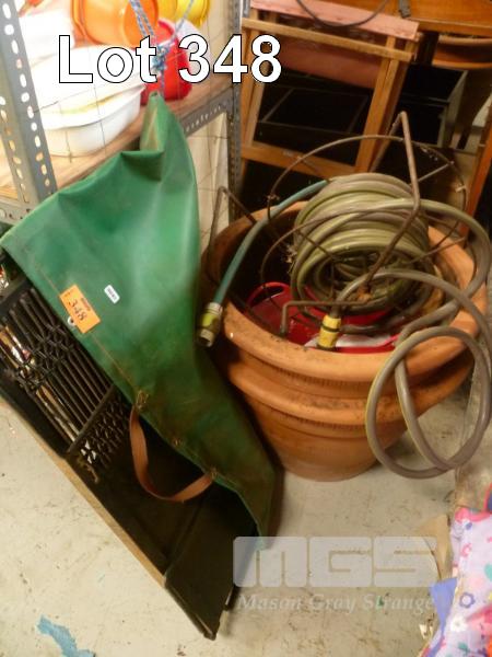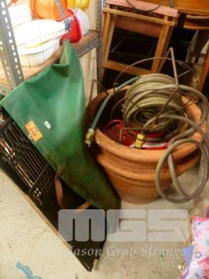 2 x LARGE TERRACOTTA GARDEN POTS, BBQ CAMP PLATE, ETC
