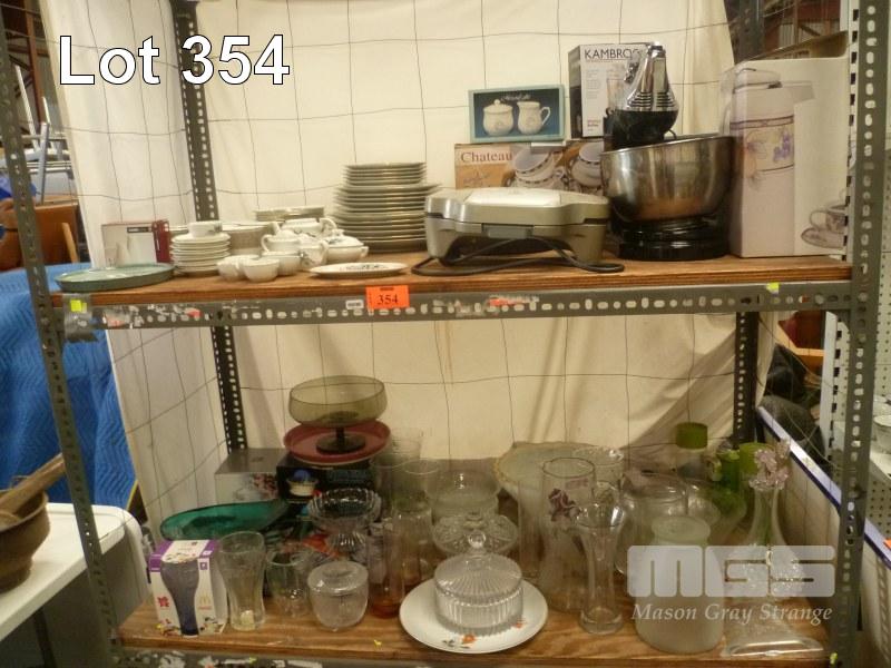 ASSORTED DINNERWARE, GLASSWARE, ETC, 2 x BAYS