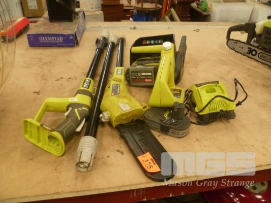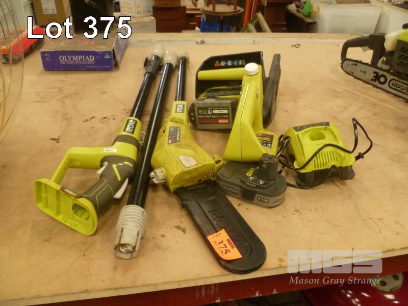 RYOBI 18V CORDLESS 3 PIECE POLE BRANCH PRUNING CHAINSAW MOD: OPP1820, RYOBI CORDLESS CHAINSAW MOD: CCW180LBC WITH CHARGER & 2 x LI-ION BATTERIES