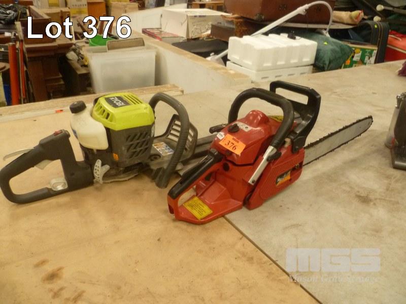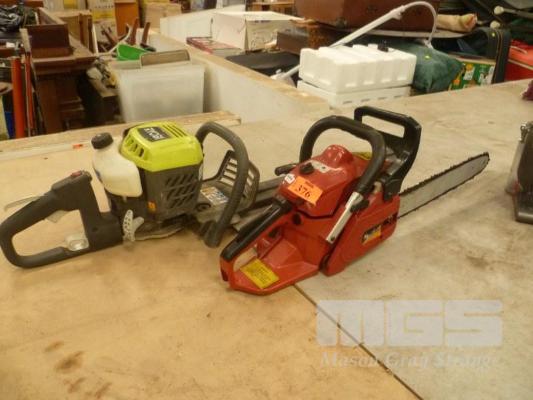 NU POWER CHAINSAW, 2 STROKE, 30cm & RYOBI HEDGE TRIMMER, 2 STROKE, 60cm