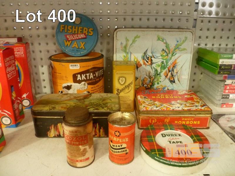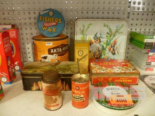 9 x VINTAGE ADVERTISING TINS INC PASCALLS, FISHERS WAX & AKTA-VITE
