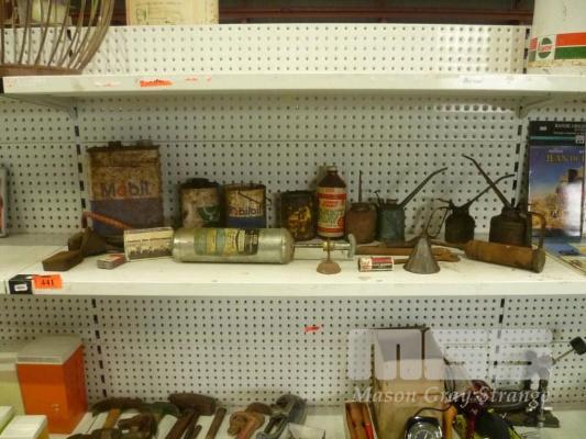 OIL TINS INC MOBIL, BP & SHELL, 6 X HANDY OILERS, GREASE GUN ETC