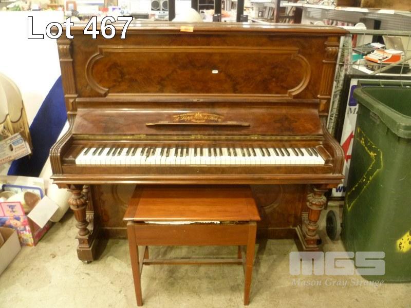 UPRIGHT PIANO, WALNUT VENEER RICH. LIPP & SOHN - K. HOF-LIEFERANTEN, STUTTGART NO. 22441 (ALL FAULTS) WITH PIANO STOOL & ASSORTED SHEET MUSIC