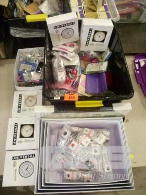 ASSORTED SEWING SUPPLIES, CRAFTING & MANTLE CLOCKS