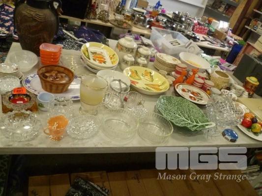 ASSORTED DINNERWARE, PLATTERS, BOWLS, CUPS, ETC, 1 x TABLE