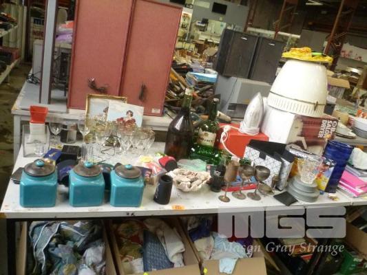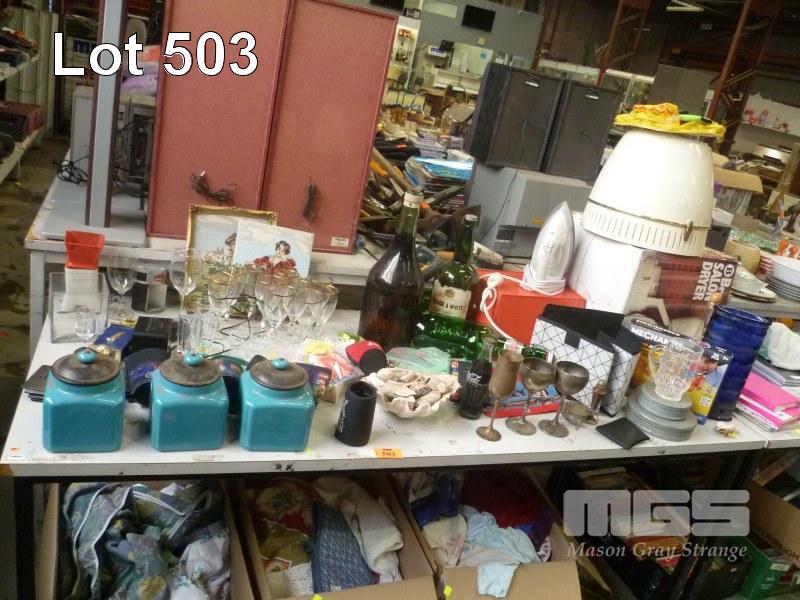 ASSORTED HOMEWARES INC GLASSWARE, VINTAGE HAIR DRYER, DRINK HOLDERS ETC