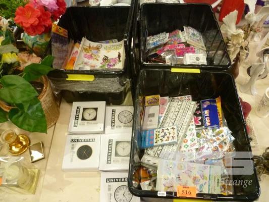 ASSORTED CHILDRENS STICKERS (3 x TUBS) & MANTLE CLOCKS