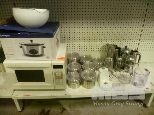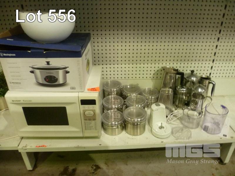 SHARP MICROWAVE, SLOW COOKER, KITCHEN CANISTERS, COFFEE/TEA POTS, ETC