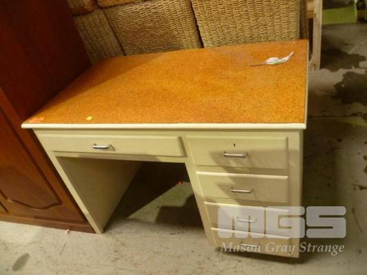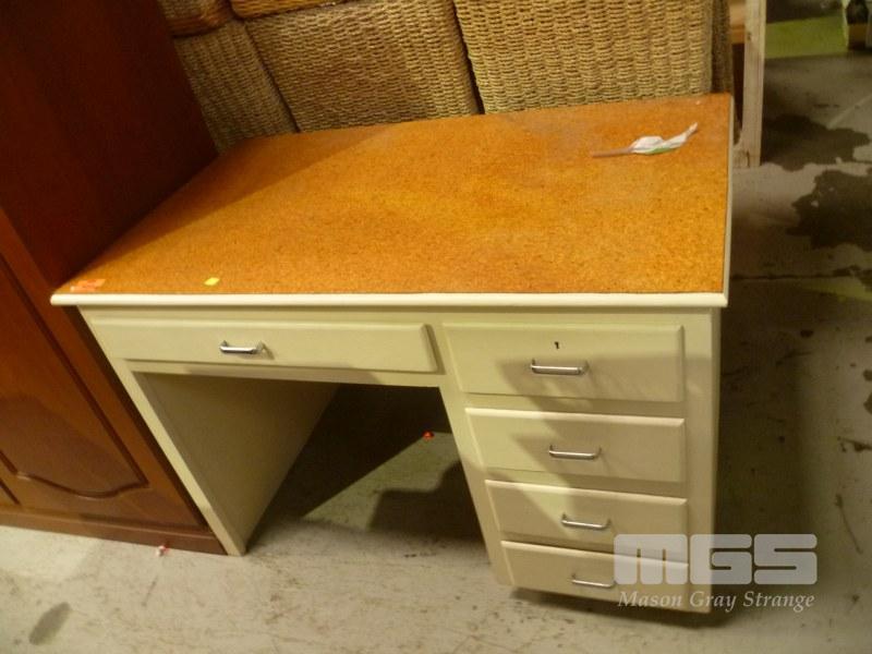 TIMBER DESK, 5 DRAWER, CORK VENEER TOP