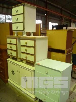 BLUE 5 DRAWER UNIT, PAIR BEDSIDE CABINETS, BEDSIDE CABINET & 2 DOOR CABIENT