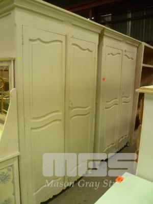 PAIR WHITE PAINTED TIMBER WARDROBES, 2 DOOR, GLASS KNOBS