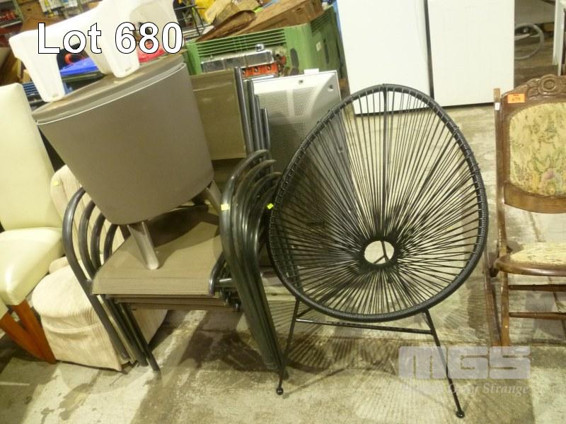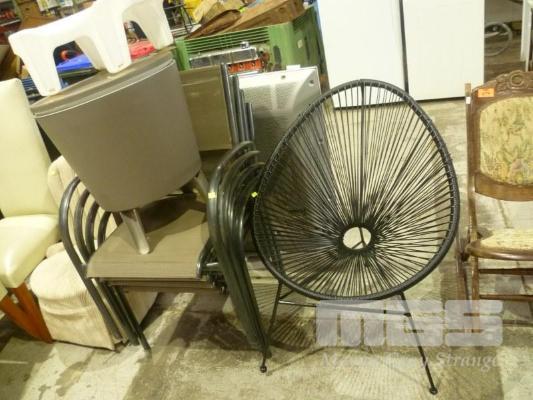 SET 4 ALUMINIUM OUTDOOR ARM CHAIRS, ROUND OUTDOOR ESKY & BLACK SAUCER CHAIR