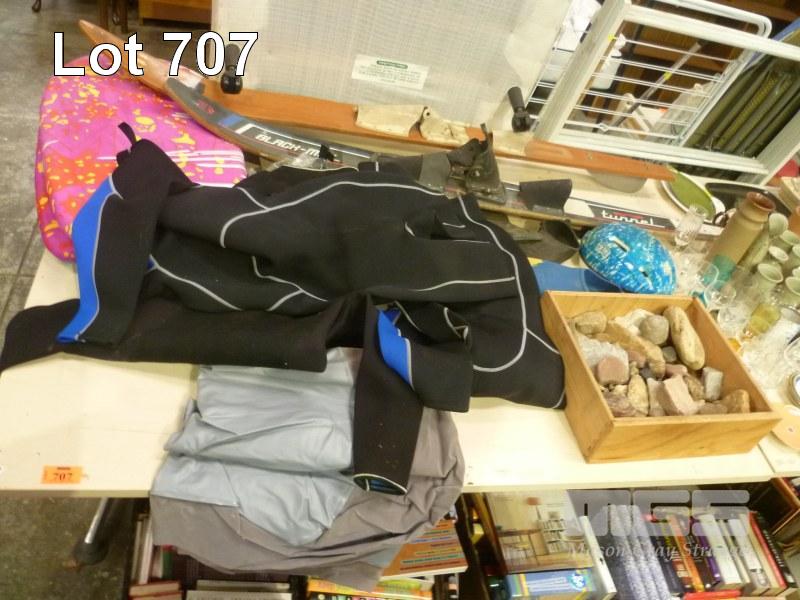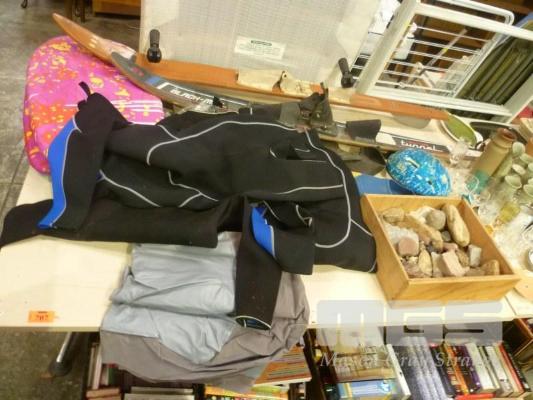 WATER SKI'S, WET SUITS, FLIPPERS, ROCK MINERALS ETC