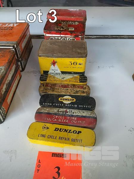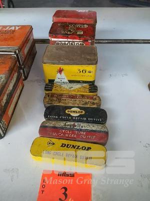 8 x TYRE REPAIR KIT TINS & VULCANISER TINS, DUNLOP, LEGGETT, POWER PLUS, ETC