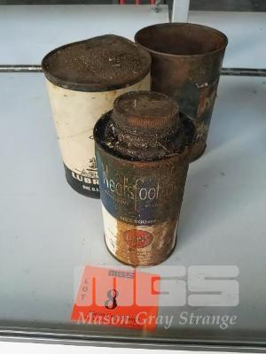 3 x ASSORTED TINS & CONTAINERS, NEATSFOOT OIL, 500ml, ARCHER LUBRICANT, ONE QUART CARDBOARD CONTAINER & NORTHLAND ONE US QUART TIN