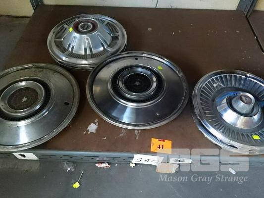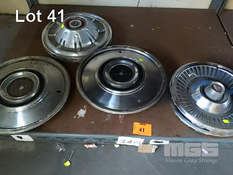 6 x ASSORTED CHROME HUB CAPS INC, 2 x THUNDERBIRD, BLACK CENTRE, 2 x THUNDERBIRD RED CENTRE & 2 x ASSORTED