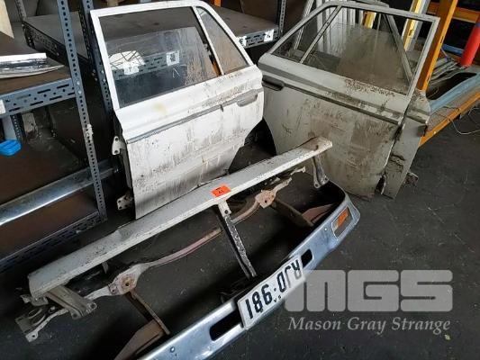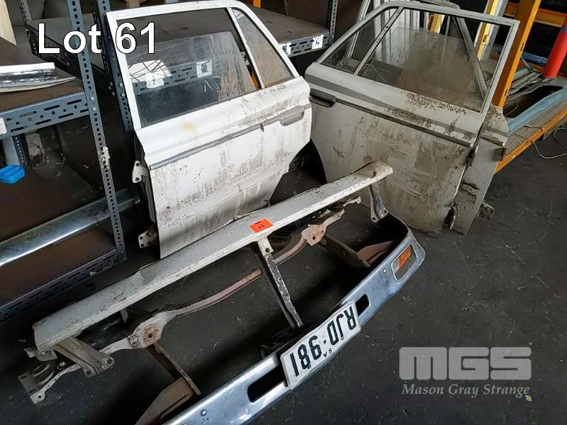 ASSORTED STUDEBAKER CAR BODY COMPONENTS & PANELS INC 1 x FRONT DOOR, 2 x REAR DOORS, CHROME BUMPER, RADIATOR SUPPORT PANEL, ETC