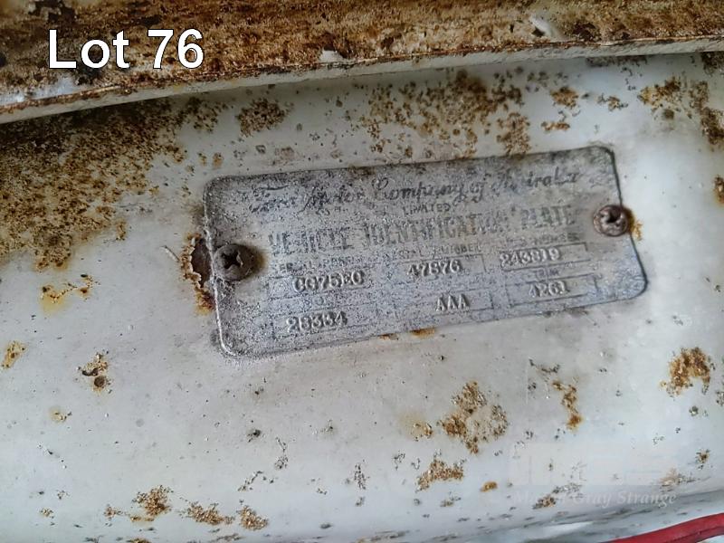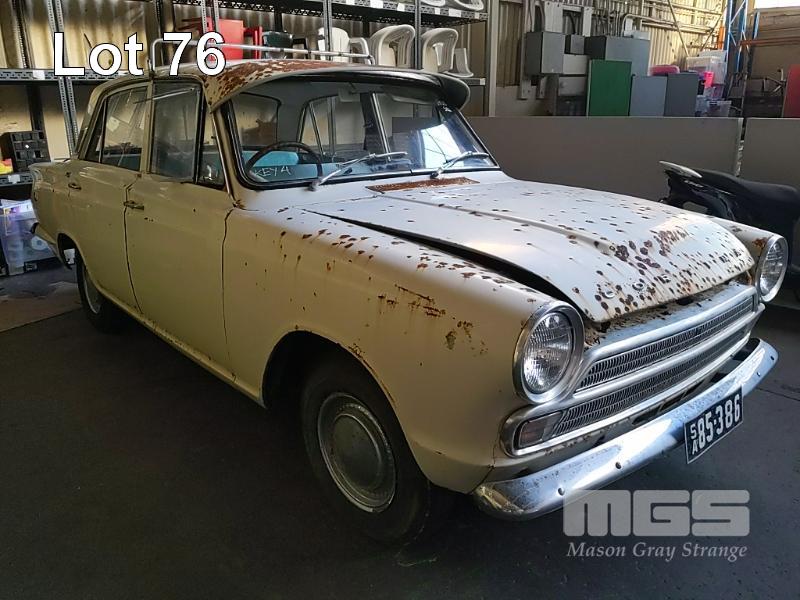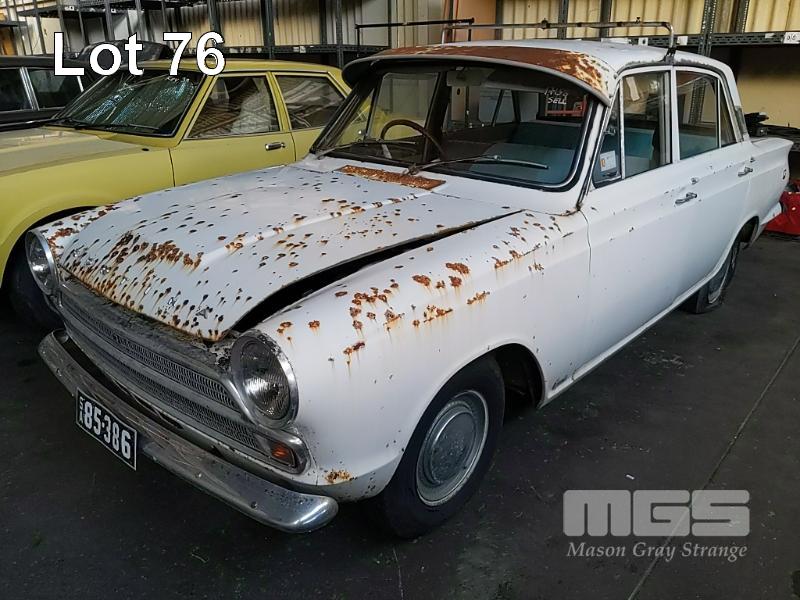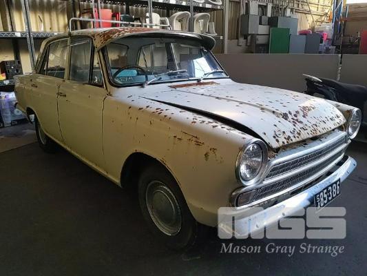1965 FORD CORTINA 440 SEDAN REG: NO PLATES ENG: 120E167810 ODO: 31,871miles 1500 4 CYLINDER, PETROL, BEIGE DUCO, 4 DOORS, 5 SEAT, ROOF RACKS, S/NO: 47876 ORIGINAL CONDITION, SURFACE RUST, SOLID SIDE SEALS BOOT & CABIN FLOOR SOLID, NO RUST EVIDENT EXCELLENT CONDITION FOR AGE TAG DETAILS: SIDO # 243819 BODY# 28334 PAINT# AAA TRIM# 4261 SERIAL PREFIX# CG75EC (WITH 1 KEY/S, WITH OWNER'S MANUAL, WITH SERVICE BOOKS) CONDITION: BODY - SURFACE RUST EVIDENT ENGINE - SEIZED