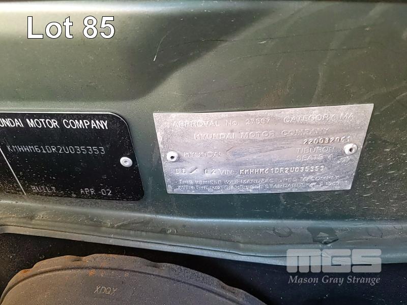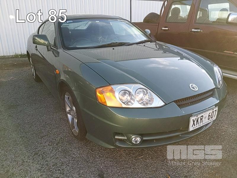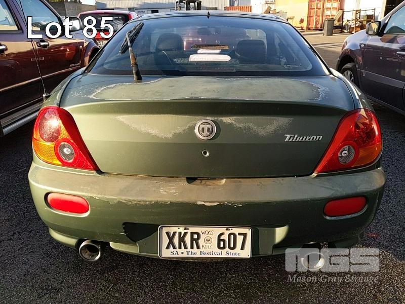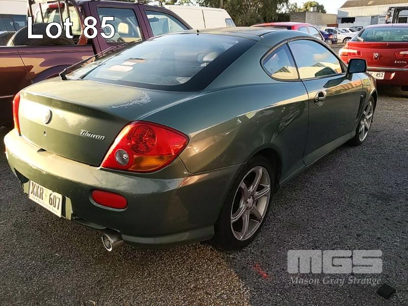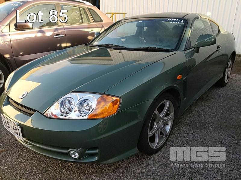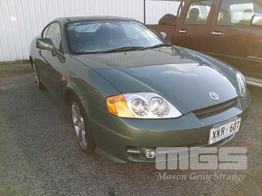 2002 HYUNDAI TIBURON COUPE REG: XKR 607 (SA) VIN: KMHHM61DR2U035353 ODO: 134,677kms SHOWING 2 LITRE 4 CYLINDER EW, 4 SPEED AUTOMATIC TRANSMISSION, PETROL, GREEN DUCO, 2 DOORS, 4 SEAT, FWD AIR BAG, AIR CON, ALLOY WHEELS, CD PLAYER, POWER STEERING, POWER WINDOWS, KEY #282 (WITH 1 KEY/S) CONDITION: - DUCO DAMAGE