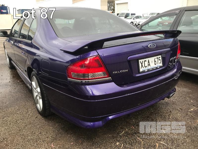 2004 FORD BA FALCON XR6 SEDAN REG: XCA 675 VIN: 6FPAAAJGSW4E47180 ENG: JGSW4E47180 ODO: 108,615kms SHOWING 4 LITRE 6 CYLINDER, 4 SPEED AUTOMATIC TRANSMISSION, PETROL, PHANTOM PURPLE, 4 DOORS, 5 SEAT, ABS, AIR BAG, AIR CON, ALLOY WHEELS, BODY KIT, CD PLAYER, CENTRAL LOCKING, CRUISE CONTROL, IMMOBILISER, POWER STEERING, POWER WINDOWS, SPARE WHEEL (WITH 2 KEY/S, WITH OWNER'S MANUAL, WITH SERVICE BOOKS)
