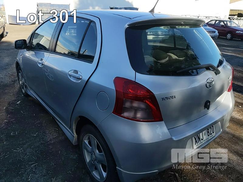 2006 TOYOTA YARIS YR-X HATCH REG: XNJ 820 (SA) VIN: JTDKT963302002531 ENG: 1NZC451913 ODO: 171,704kms SHOWING 1.5 LITRE, 4 CYLINDER, 5 SPEED MANUAL TRANSMISSION, VVT-I PETROL, SILVER DUCO, 4 DOORS, 5 SEAT, ABS, AIR BAG, ALLOY WHEELS, CD PLAYER, CENTRAL LOCKING, CRUISE CONTROL, FOG LAMPS, IMMOBILISER, POWER STEERING, POWER WINDOWS, SPARE WHEEL, TRACTION CONTROL (NO PAPERS, WITH 3 KEY/S, WITH OWNER'S MANUAL, WITH SERVICE BOOKS)
