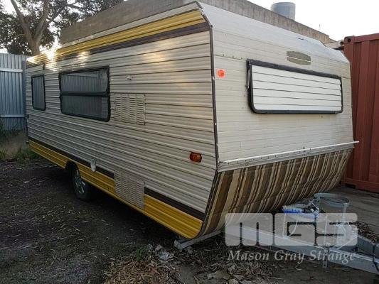SPACELINE 21FT SINGLE AXLE POP TOP CARAVAN REG: TZB 434 (SA) TWIN BERTH, 2 x SINGLE BEDS WOODGRAIN LAMINATE INTERNAL FITTINGS 2 x COUCHES, DINING TABLE, ELECTROLUX 3 WAY REFRIGERATOR SAMSUNG MICROWAVE, 6AS 2 BURNER CHEF RANGER COOKTOP & OVEN SUPREME RANGEHOOD, INTERNAL LIGHTING & POWER POINTS CANVAS AWNING, EXTERNAL LIGHTING, 240V POWER & WATER INLET SPARE TYRE, TWIN GAS BOTTLE CRADLES, CABLE TRAILER BRAKES BALL HITCH, TWIN JOCKEY WHEEL BRACKETS (NO JOCKEY WHEEL) (NO PAPERS)