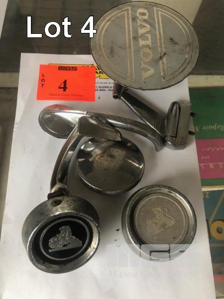 EARLY HOLDEN MIRROR BASES, DOOR HANDLES, CENTER WHEEL TRIM CAPS VOLVO CENTER CAP