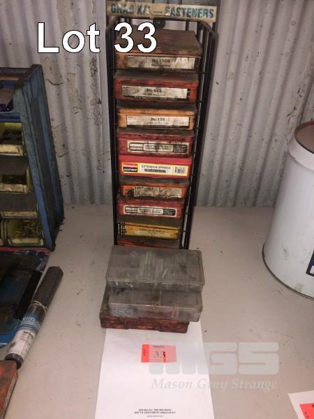GJ WORKS GRAB KIT STAND & ASSORTED GRAB KITS INCLUDING, SPRINGS, C CLIPS, NIPPLES, FASTNERS etc.